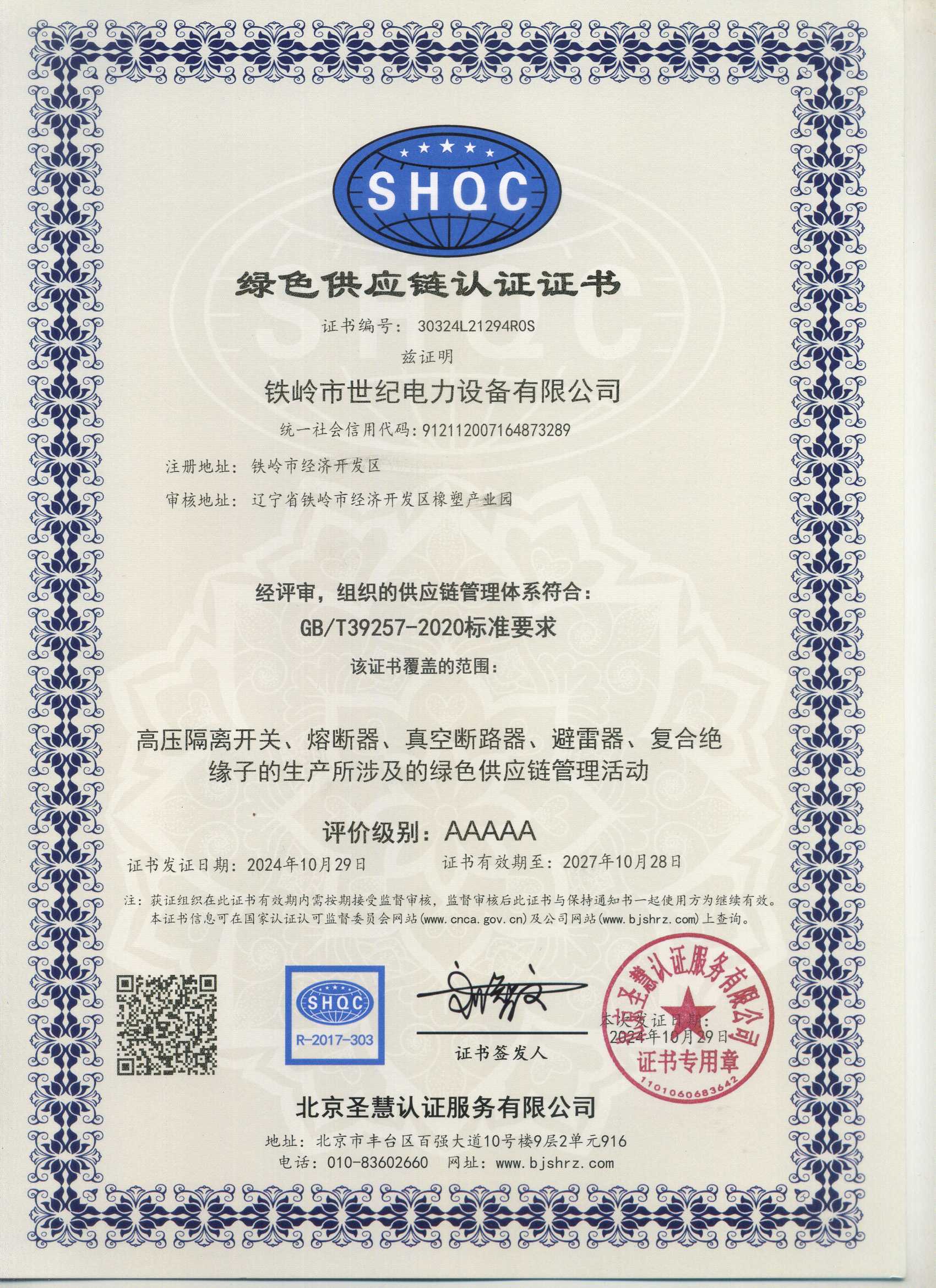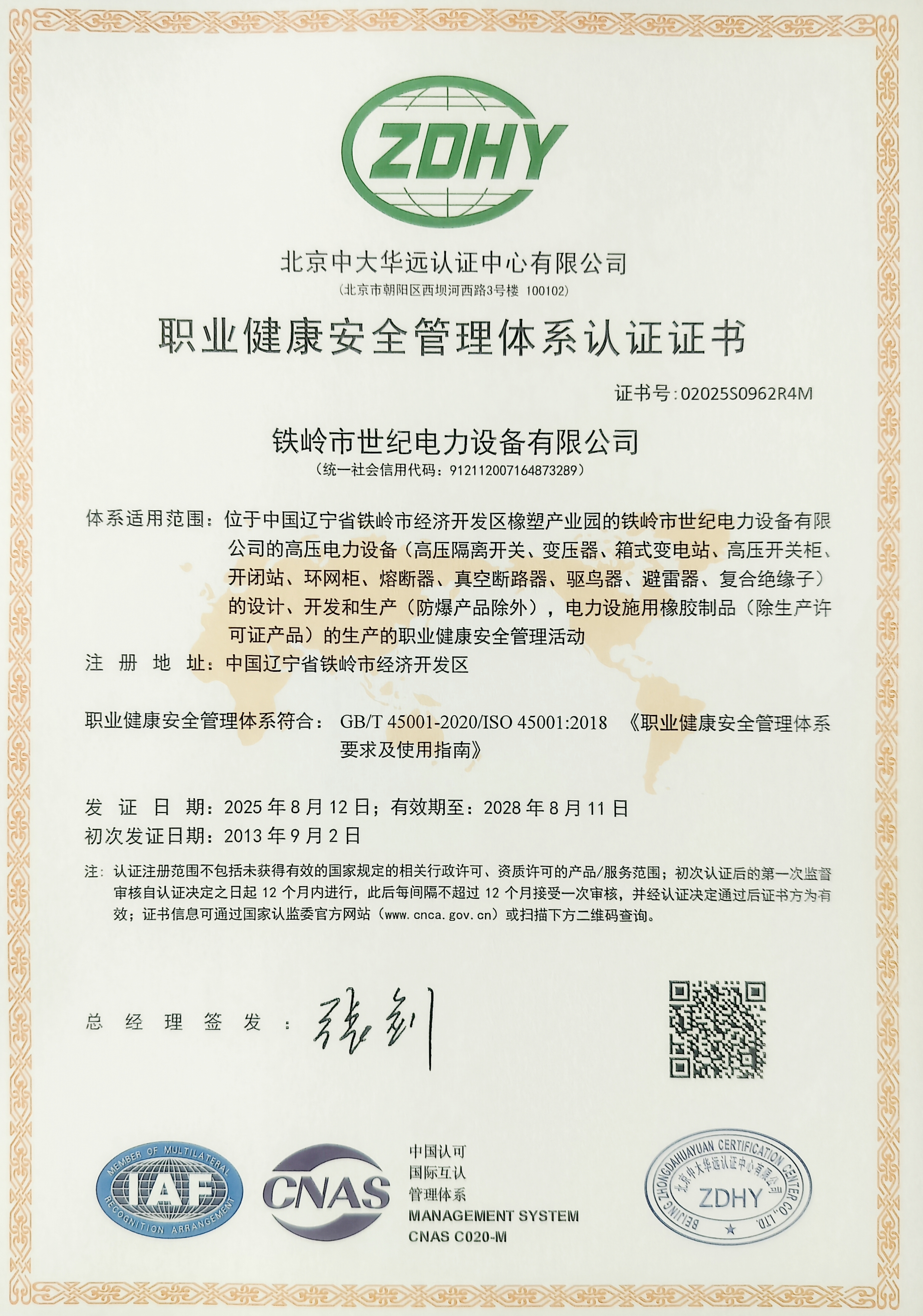 鐵嶺市世紀(jì)電力設(shè)備有限公司是集科研開發(fā)、生產(chǎn)制造、用戶服務(wù)于一體的國家高新技術(shù)企業(yè),始建于1999年,位于鐵嶺經(jīng)濟(jì)開發(fā)區(qū),占地面積5萬余平方米,建筑面積2萬余平方米。主要從事國家電網(wǎng)配套戶外高低壓隔離開關(guān)、電力電纜、變壓器成套裝置、高低壓開關(guān)柜、箱式變電站、絕緣子等產(chǎn)品的研發(fā)、生產(chǎn)和銷售。公司現(xiàn)有國家發(fā)明專利6項、實用新型專利9項,公司通過了ISO9001國際質(zhì)量管理體系認(rèn)證、ISO14001環(huán)境管理體系認(rèn)證和ISO 45001職業(yè)健康安全體系認(rèn)證。